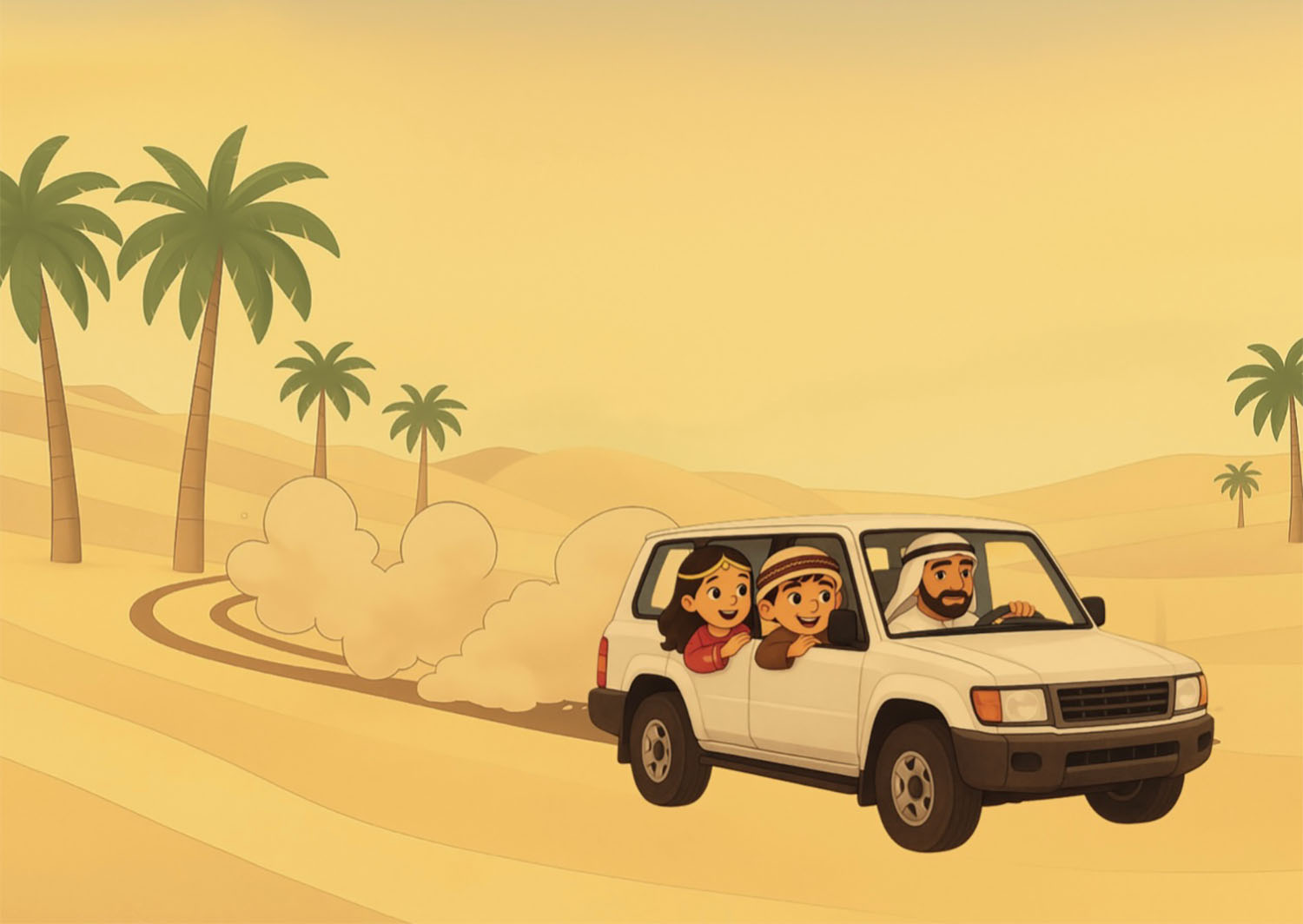 On a sunlit safari through the desert, Mira and Rashid skip, run, and explore, spotting animals along the way. From a desert fox in the morning sun to owls perched quietly, from flamingos by the lagoon to oryx crossing the sands, children are invited to count each creature in English and Arabic. By the time the camels stride across the dunes, the day has turned to night and the stars shine above. With gentle rhyme, repetition, and bilingual text, this story introduces numbers one to ten while celebrating desert wildlife and culture. A perfect classroom resource for early learners, it offers teachers opportunities for role play, animal study, and bilingual counting games.